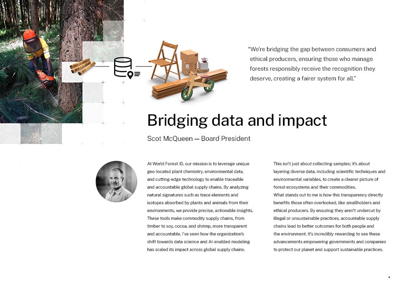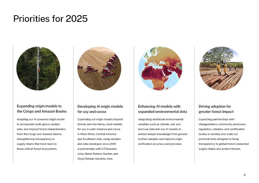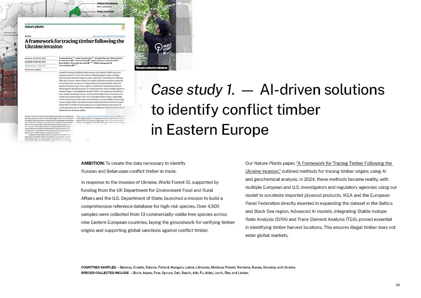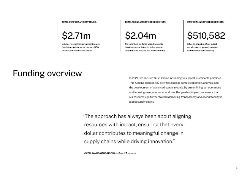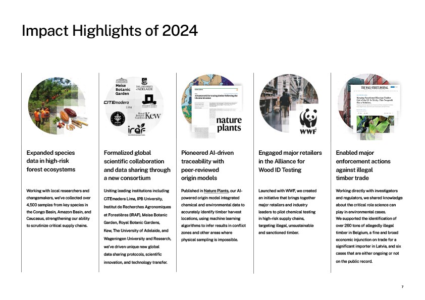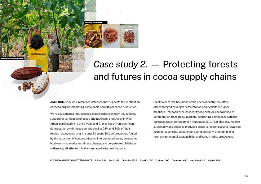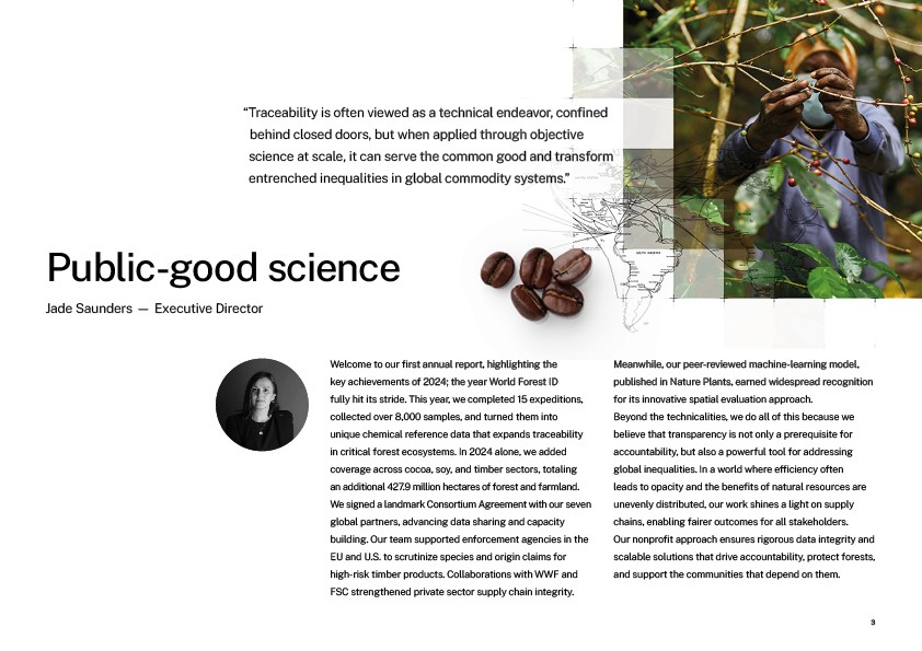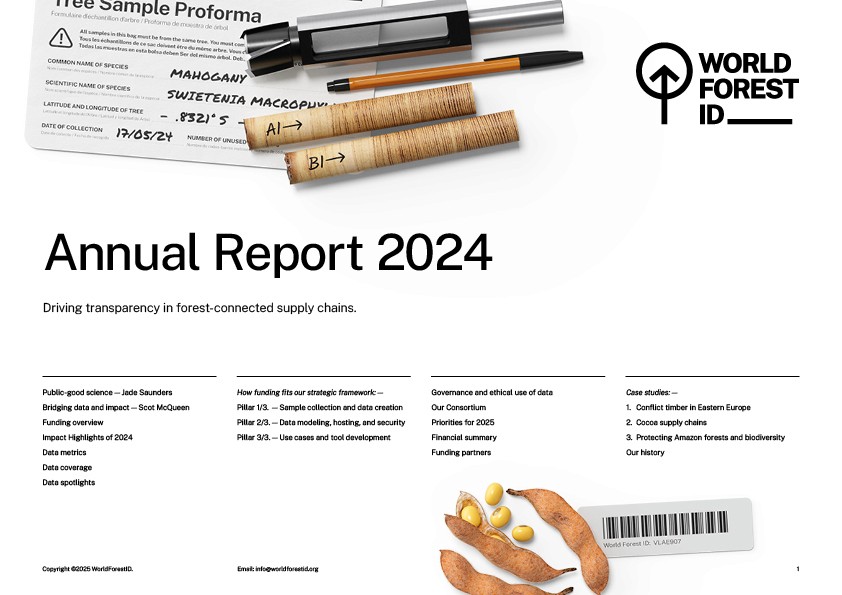 Dive into our first Annual Report, a comprehensive overview of our 2024 achievements and activities. This report highlights key advancements in AI-enabled traceability, data collection across high-risk forest ecosystems, and the expansion of partnerships with leading institutions worldwide. Learn about our impact metrics, governance, funding, and the critical role of science in securing supply chain accountability. Case studies from Eastern Europe, the Amazon, and global cocoa supply chains provide a closer look at how our work drives actionable change.